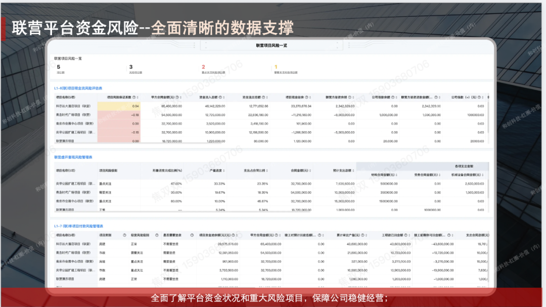 公司意識(shí)到,項(xiàng)目越來(lái)越大,越是回款好的項(xiàng)目,更要嚴(yán)格把控資金風(fēng)險(xiǎn),提升項(xiàng)目運(yùn)營(yíng)能力 。由此,董事長(zhǎng)李總提出,公司正在從施工型企業(yè)向管理型公司轉(zhuǎn)型,當(dāng)前的傳統(tǒng)管理模式跟不上時(shí)代,這就要求必須跟上數(shù)字化時(shí)代的步伐,利用先進(jìn)的數(shù)字信息化技術(shù)進(jìn)行管理升級(jí),只有管理效率真正提升了,才能迎接即將到來(lái)的各種新挑戰(zhàn)。