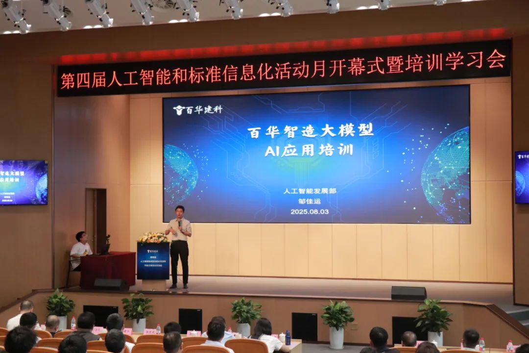 隨后,公司人工智能發展部副總經理鄒佳運發布《人工智能與標準信息化成果與未來發展》報告。他指出,“百華智造”管理系統已覆蓋公司94%的業務流程,實現跨部門數據共享,AI助手、AI視覺識別及AI報表分析等技術已全面落地應用。未來將重點強化預算管理模塊功能,通過授權精簡審批流程,深化AI應用,助力項目提質增效。