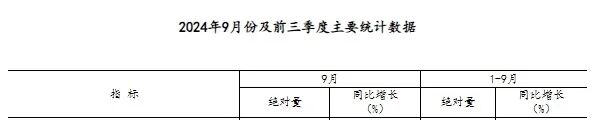 2024年1—9月份,全國固定資產投資(不含農戶)378978億元,同比增長3.4%。其中,民間固定資產投資191001億元,下降0.2%。從環比看,9月份固定資產投資(不含農戶)增長0.65%。